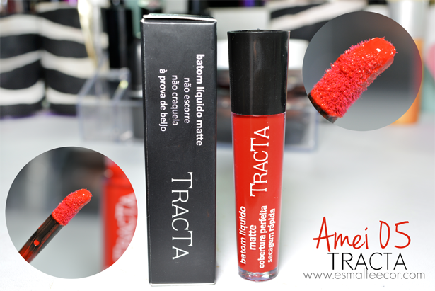 A cor que ganhei foi a Amei 05, um vermelho aberto lindíssimo. Essa linha de batons da Tracta possui uma embalagem muito bonitinha, pois ela não é um tubinho reto, ela é mais fininha na parte inferior, que acaba dando um charme a embalagem.